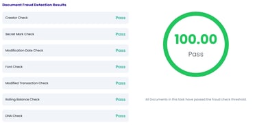 We verify the document authenticity through metadata analysis and our proprietary checks.